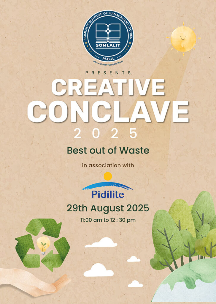 At SomLalit Institute of Management Studies, we believe learning goes beyond classrooms. On 29th August 2025, in association with Pidilite, we organized the Creative Conclave on the theme “Best out of Waste.”