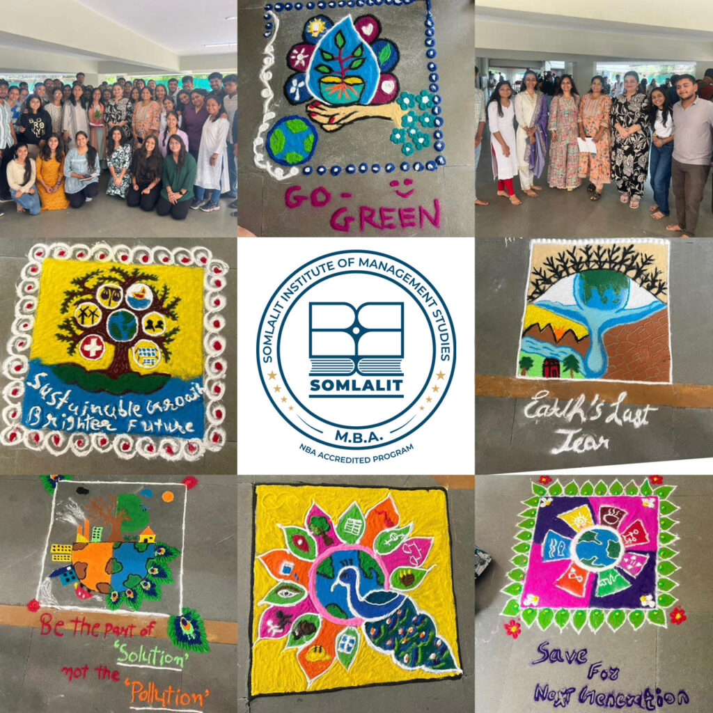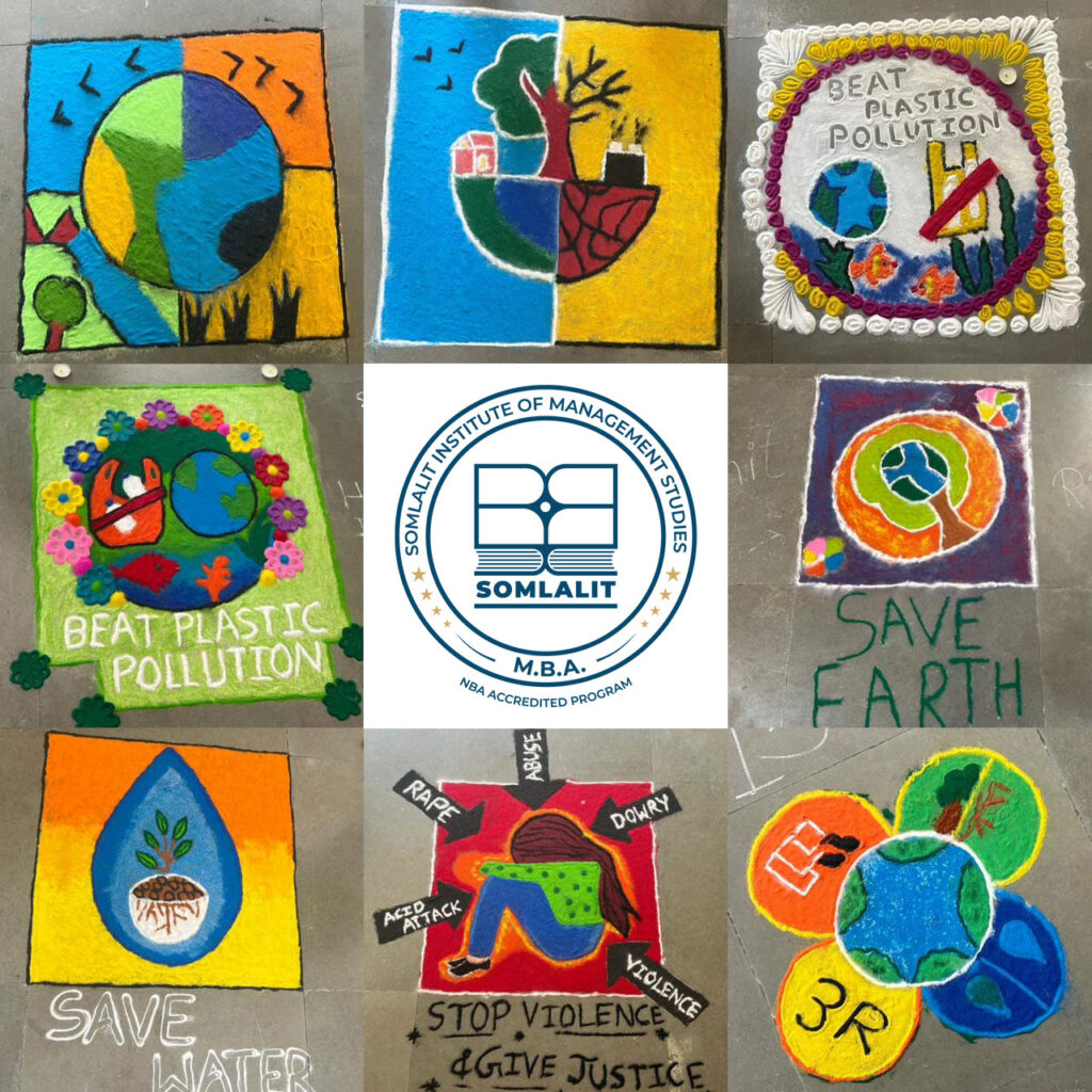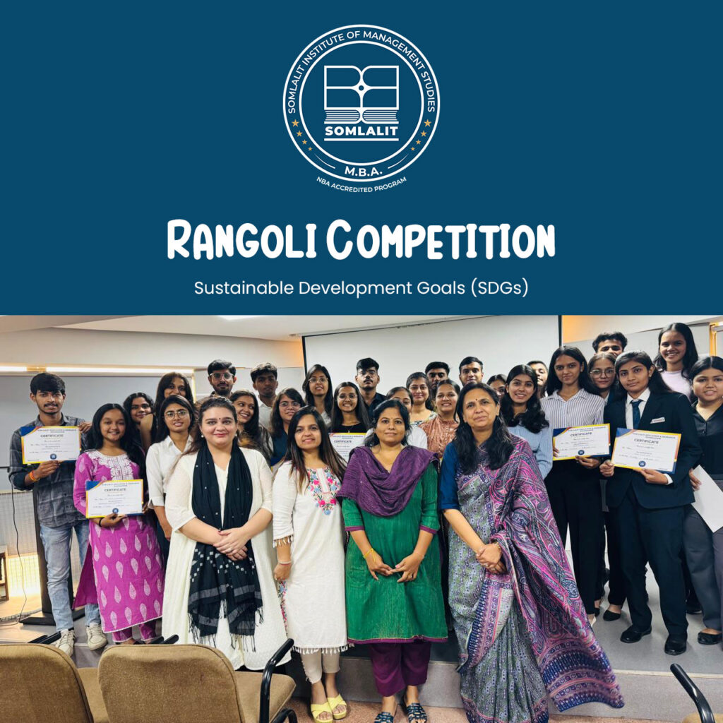 Rangoli Competition on the Theme of Sustainable Development Goals (SDGs) was organized by Som Lalit Institute of Management Studies on 11th October, 2025. Ms. Veena Panchal, Pidilite Expert Teacher, was invited as the Judge for the event.