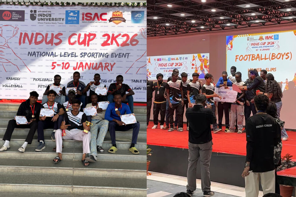 The football team representing Somlalit Institute of Management Studies, Somlalit Institute of Business Administration, and Somlalit College of Commerce clinched a glorious victory at Indus Cup 2026, organized by Indus University. #INDUSCUP2k26